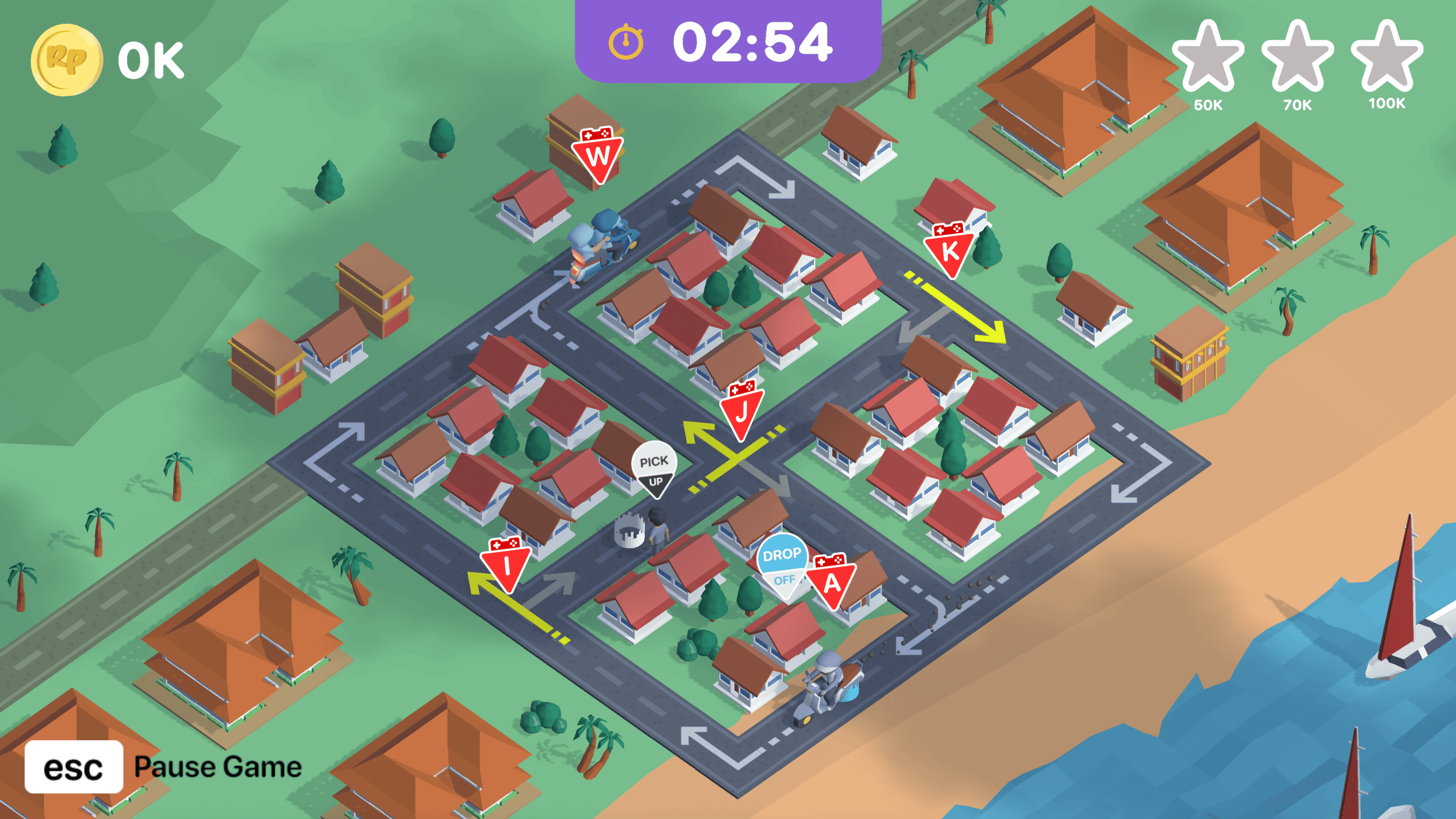Race through Indonesia's bustling streets as a motorbike taxi driver in this hectic action-strategy game!